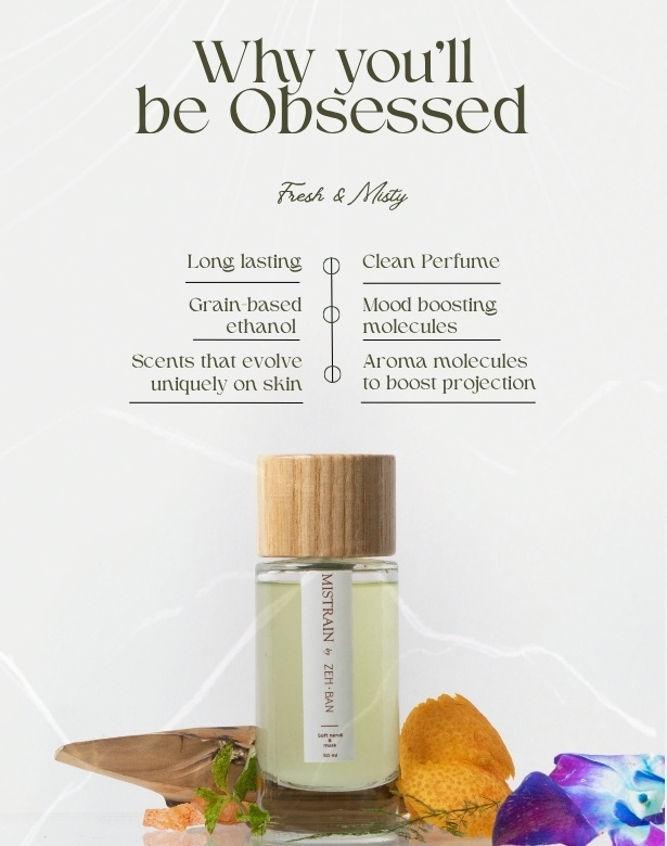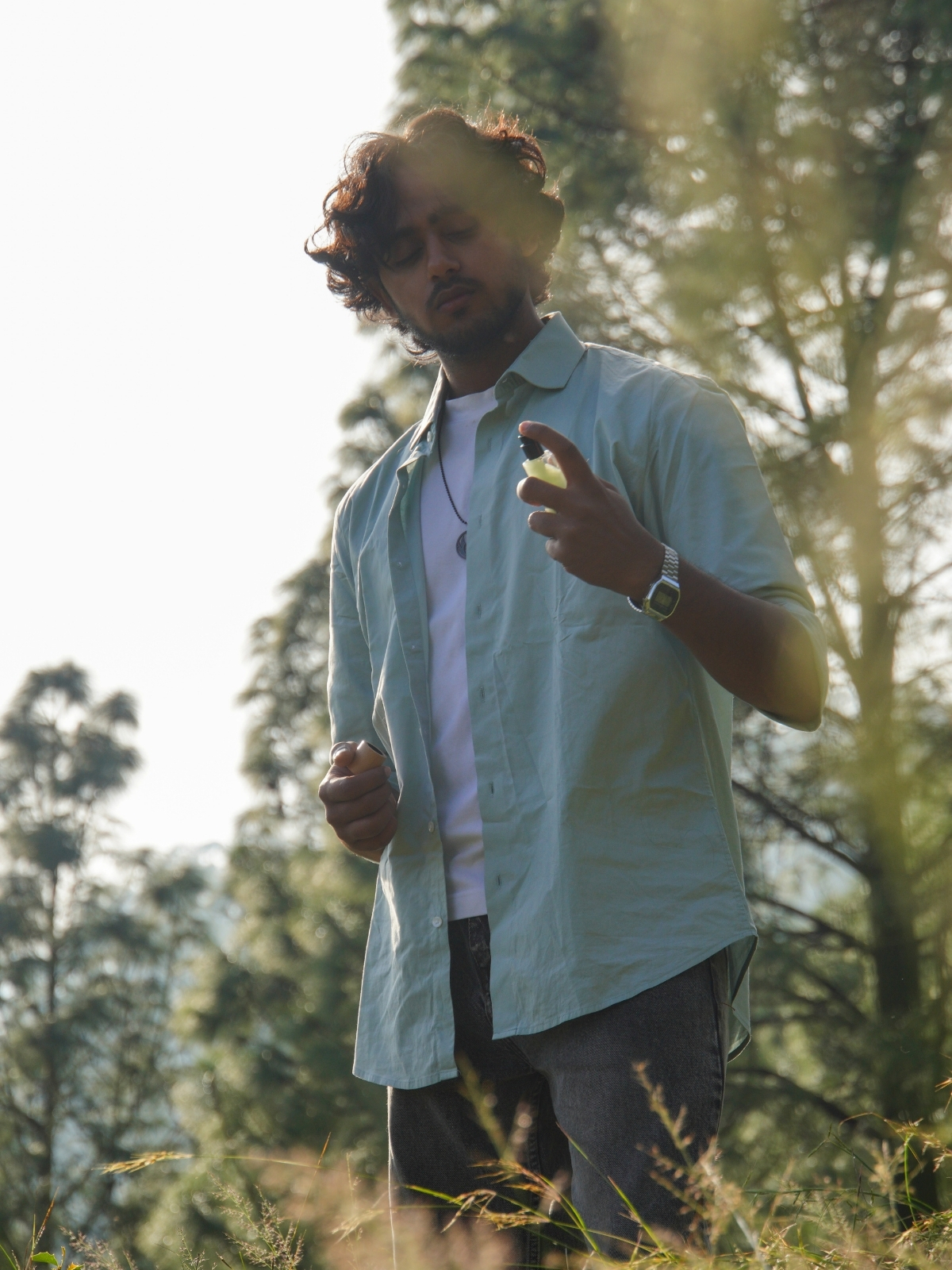 The opening is crisp — mint, violet leaf, and citrus peel, fresh as dew. Neroli and a touch of oud weave through the heart, balancing brightness with quiet depth. The dry down of white musk, sandalwood, and amber keeps it calm, grounding, and endlessly wearable.