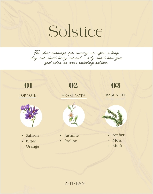 It opens with saffron and bitter orange, bold and luminous. The heart blooms with jasmine — rich, addictive, impossible to ignore. Beneath it all, praline, moss, and amber smolder, leaving warmth that clings to the skin.