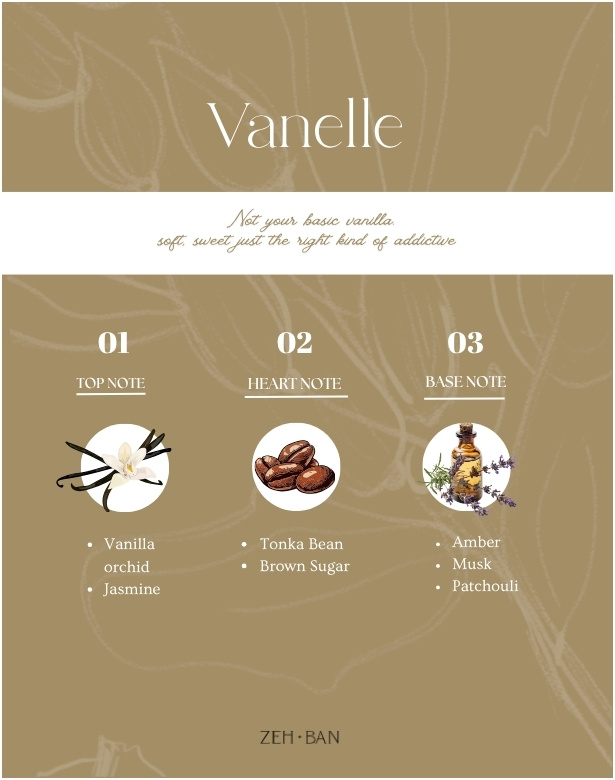 It opens soft, with vanilla orchid and a hint of brown sugar. The heart deepens into tonka – creamy, velvety, endlessly addictive. At the base, amber, musk, and patchouli keep it warm and lingering, like skin after candlelight.